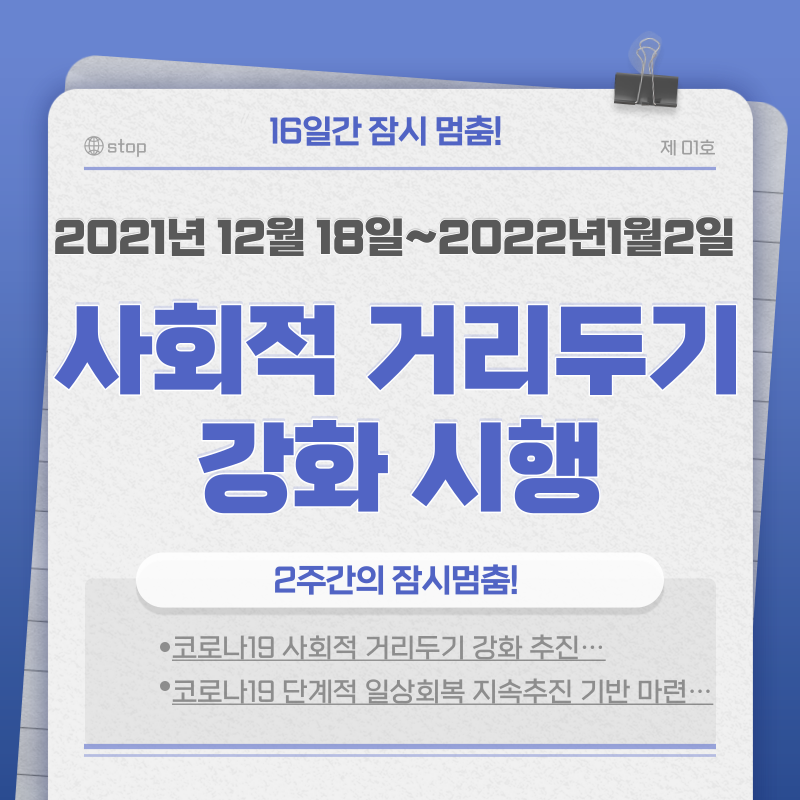 2주간의 잠시 멈춤! 사회적 거리두기 강화 시행 (21.12.18 ~ 22.1.2. 16일간)