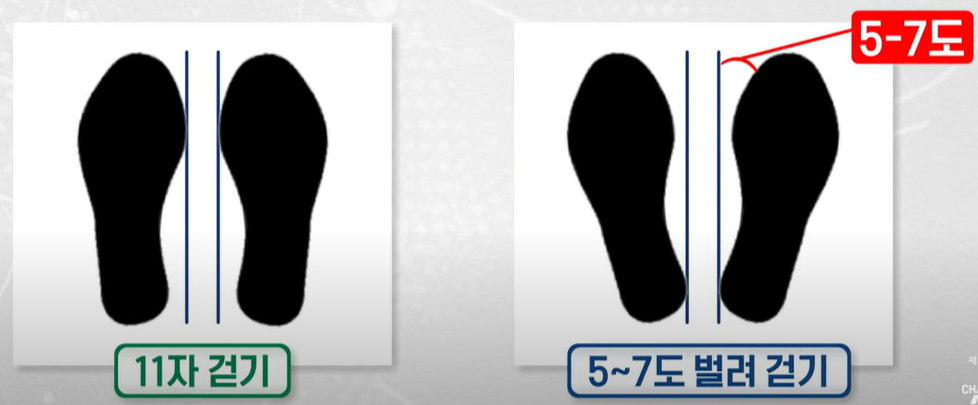 두 번째 : 관절이 아프면 5~7도 벌려서 걸어라!