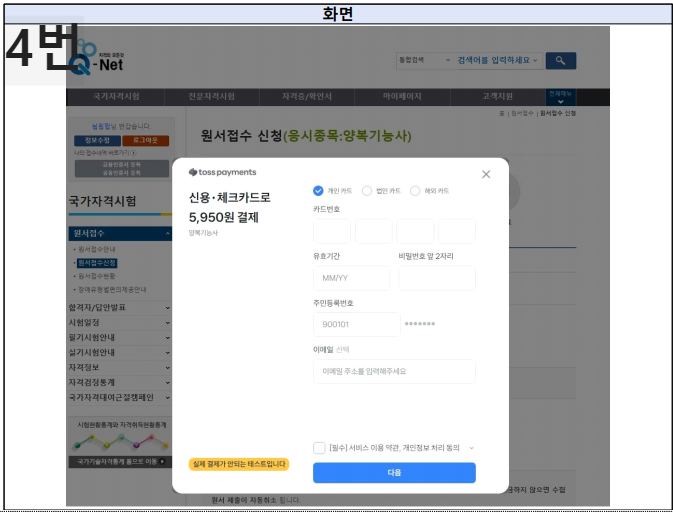 4번 응시료 결제(신용카드, 실시간계좌이체, 가상계좌 등)