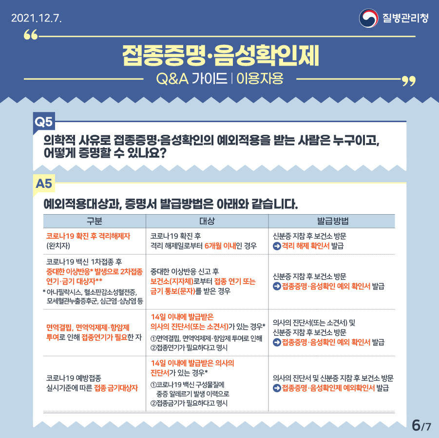 접종 증명·음성 확인제 Q&A 가이드 -이용자용-