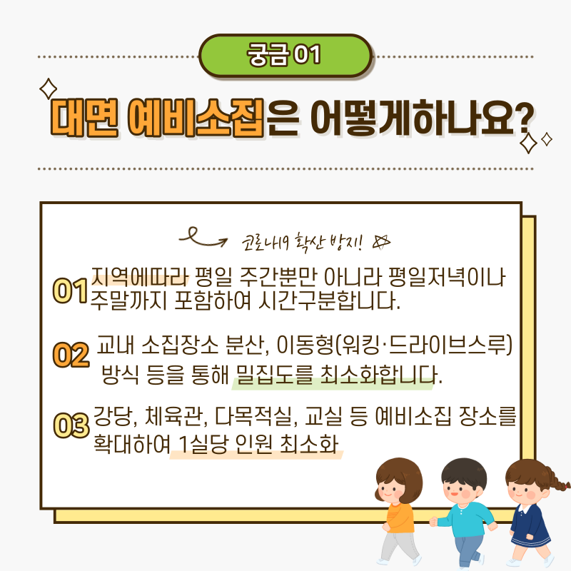 - 교육부는 예비소집 기간 중 교육청·단위학교·지자체·경찰청 등과 적극 협력하여